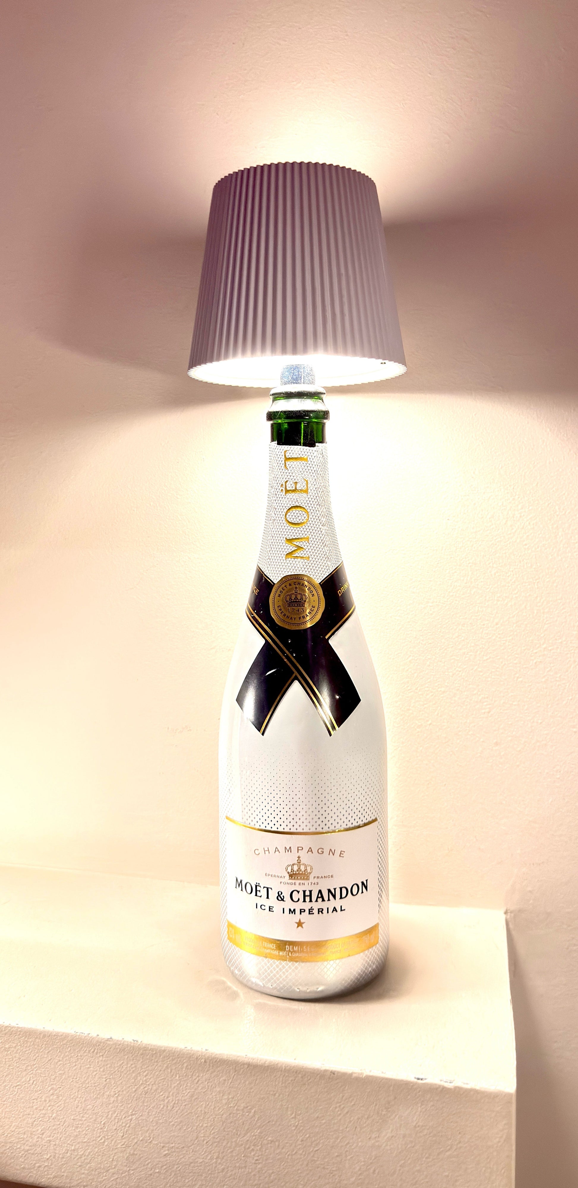 The classic Moët & Chandon Ice ''Champagne'' has been transformed into a handmade, high-quality table lamp.